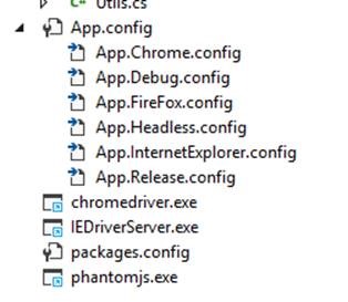 What is the Config transform? This will allow you to change the configuration settings for your app or web configuration files. When you use Selenium WebDriver, you have the option to run your tests using either Chrome, Internet Explorer, FireFox even PhantomJS (Headless testing). See the sample C# code below to generate the correct web driver instance through configuration settings. The method takes in a string value with a default browser of Internet Explorer. Note that sample code below uses try catches to log exception using Log4Net. You can ignore this but just re-use the code for creating the proper Selenium WebDriver