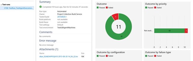 If you configured it correctly, you should get a successful build! Now the result of the build depends on the Pass/Fail results of the tests. In this case, I’ve intentionally Failed 1 automated test to trigger a build failure that coincides to a failing test. Passing the fail test in the future will result to a complete build