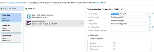 This is pretty straightforward step. You will basically ensure that any test project dlls will be executed. In this case, this is coming from the Test Artifacts that you’ve built in the build definition