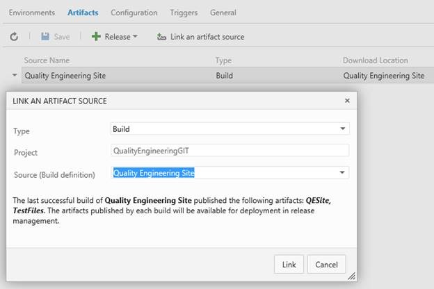 Once you select the build definition field. Release Manager will automatically sense the artifacts associated with that build.