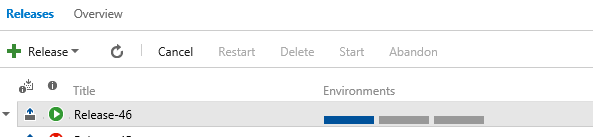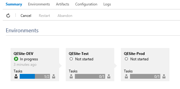 Kicking off a Release. Normally, I would assign an “Approver” before deploying to Test and Prod but for the purpose of this post, I’ve skipped this capability.