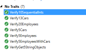 In your tests, make sure to use the custom test class and enumerator attribute that we previously defined. Here’s a sample of these test methods that uses different IEnumerable objects.